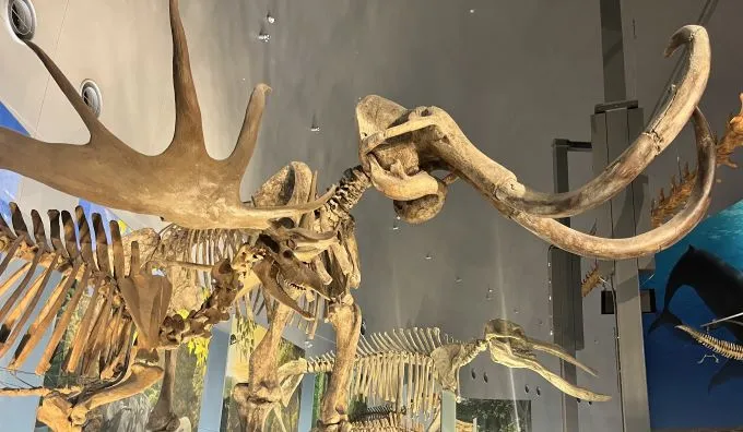 哺乳類コーナーでは、マンモスやオオツノジカの巨体に思わず息をのむ場面も。