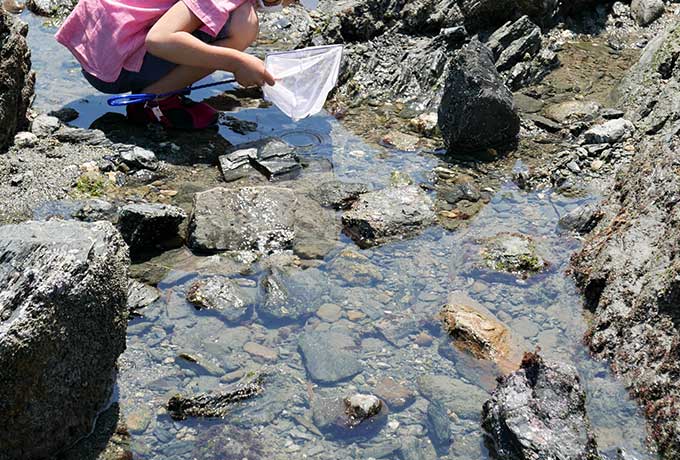 越前海岸は岩場が多いため、海水浴だけでなく磯遊びも楽しめます。透明度の高い浅瀬では、カニや小魚、貝などの海の生き物を観察でき、都会では体験できない自然との触れ合いが子どもたちの好奇心を刺激します。越前海岸には200種類以上のウミウシも生息しており、運が良ければ色とりどりの美しいウミウシに出会えることも。