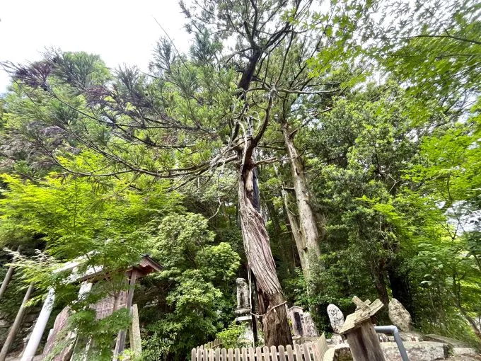 参道の前に出迎えてくれたのは、雷を受けながらも成長を続ける“雷杉”。焼け焦げた幹は痛々しいものの、たくましく枝を伸ばすそのたくましさに、生命力の強さを感じます。
