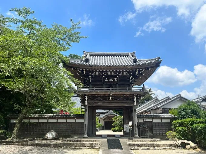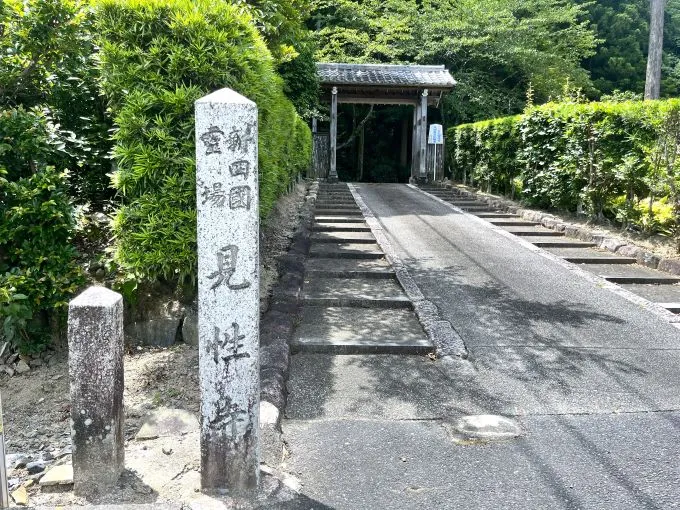 「廣幡神社」を出発し、金渓川を横目に5分程自転車を漕いでいくと、2つ目の目的地である「見性寺」の山門が見えてきます。