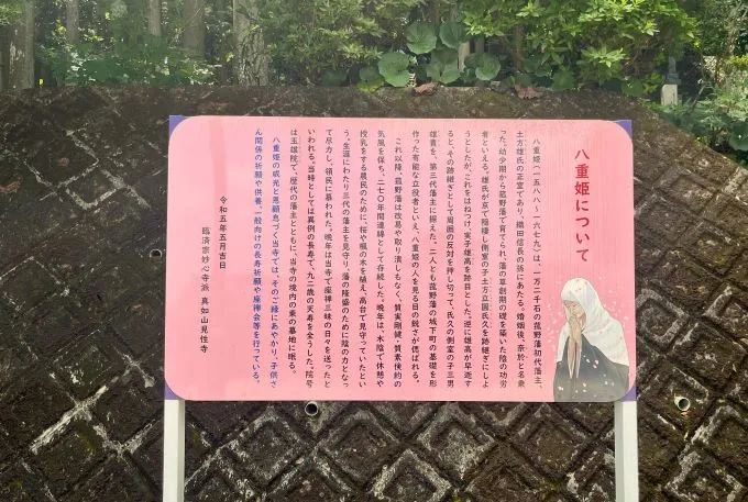 「見性寺」でもう一人、ゆかりの人物として知られているのが織田信長の孫娘・八重姫。小物初代藩主・土方雄氏の正室であり、菰野藩を影で支えた功労者として伝えられています。