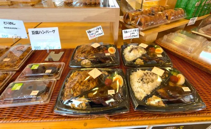 豆腐ハンバーグや揚げ出し豆腐、大豆の唐揚げと言った作りたてのお惣菜やお弁当も充実しています。