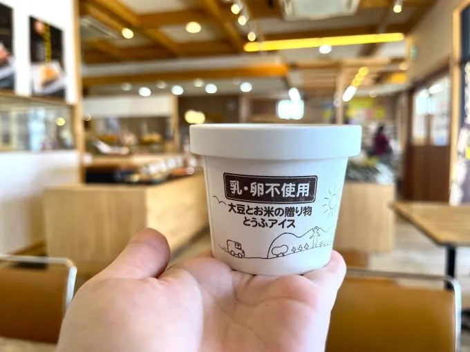 さらにお店には購入した商品をその場で味わえる休憩スペースもスタンバイ。今回は乳製品・卵不使用の『とうふアイス』と、世代を超えて愛される『究極のきぬドーナツ』をいただきました。