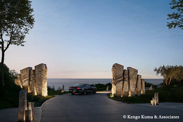 石柱の連なるオブジェに迎えられ