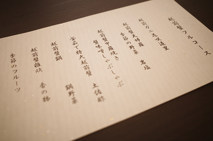 →「活け越前がにフルコース」の詳細はこちらの記事で紹介しています。そちらをご覧ください。リンク