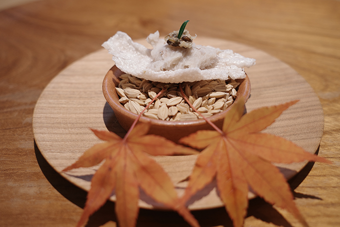 滋賀と秋の食材を丁寧に仕上げたコース料理は、器までも美しく、目にも舌にも嬉しいひと皿ばかり。