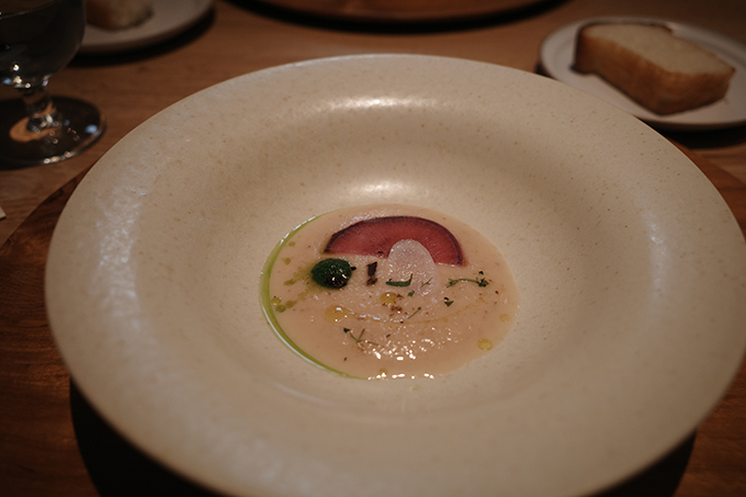 カブと酒粕のスープ。カブの爽やかさと酒粕のまろやかさがマッチ!