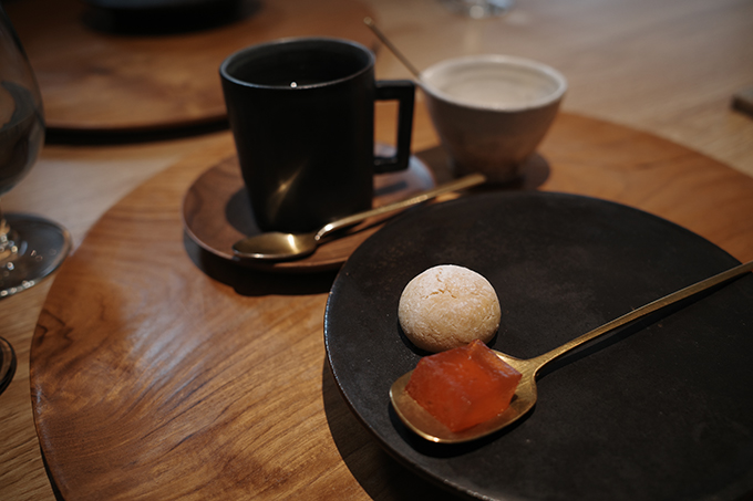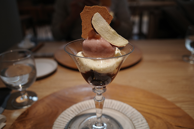 2種のジェラートと下にはリンゴのコンポートと餡のマリアージュ。感動の美味しさでした。