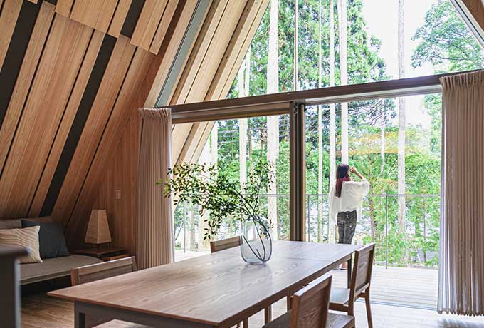 サウナやヨガ、焚き火をラグジュアリーに愉しめる大人のための新エリア 『the FOREST』では、森の中での特別な癒し体験をお愉しみいただけます。 また、隈研吾氏設計のヴィラ「アトリエ」では、建築美と自然が融合した 贅沢な滞在をご体験いただけます。