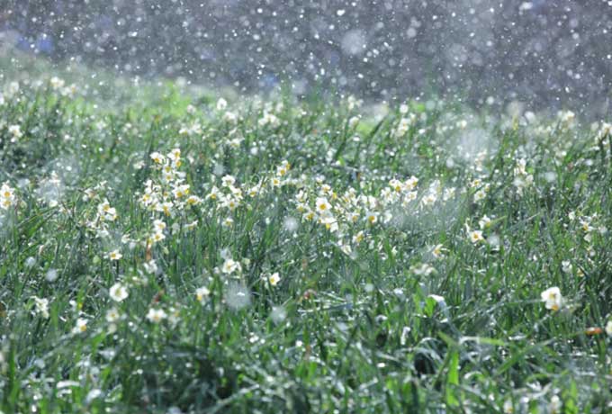 寒風の中で咲き誇る水仙の花。雪化粧した斜面に広がる白い絨毯。そして、その絶景を混雑することなく、ゆっくりと愛でることができる贅沢な時間——。