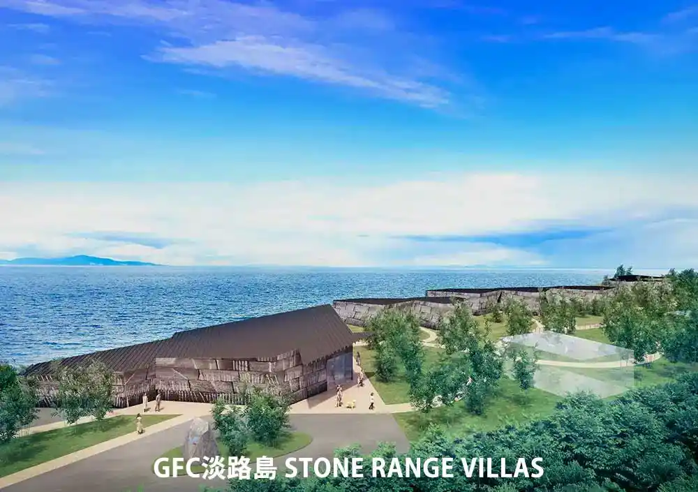 GFC淡路島が手掛ける新たなプロジェクトが、この壮大な地で始動します。設計を手掛けるのは、世界的建築家・隈研吾氏。自然との共存をテーマに、石の彫刻のようにたたずむヴィラ群と、海を一望するパノラマビューのレストランが融合。訪れるすべての人に、心から解放される特別な時間をお届けします。